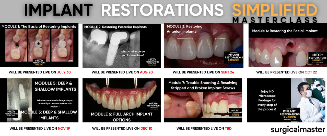 Implant Restorations Simplified Masterclass, a $3,500 value, offered to SurgicalMaster's community of dentists at $1997.