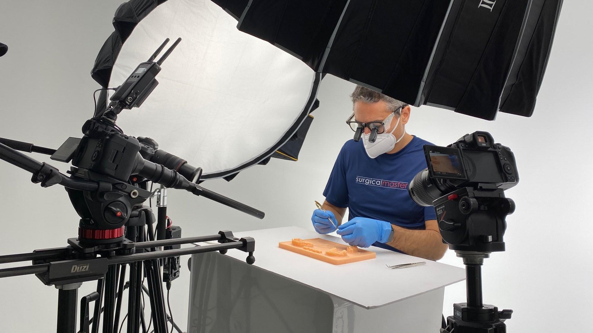 Dr. Ziv Simon opens his books on soft tissue suturing, so you can